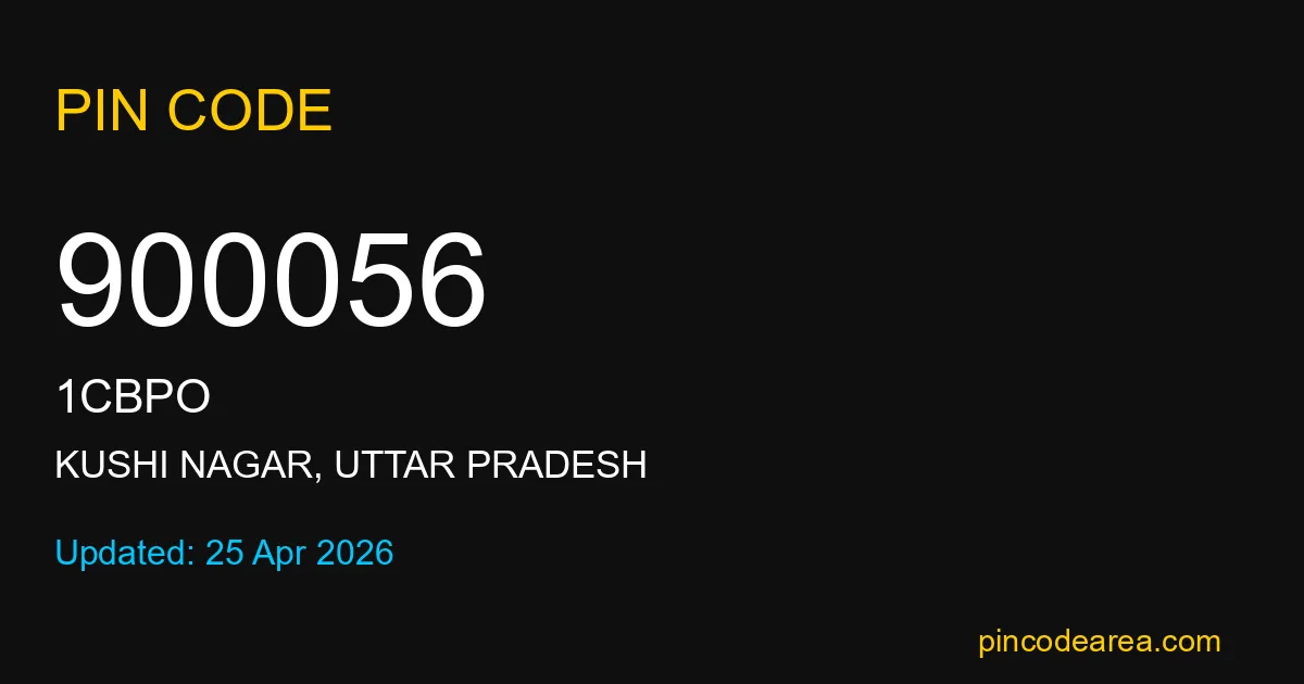 900056 PIN Code is assigned to 1CBPO Post Office located in Kushi Nagar district of Uttar Pradesh. It helps in identifying the exact delivery area.