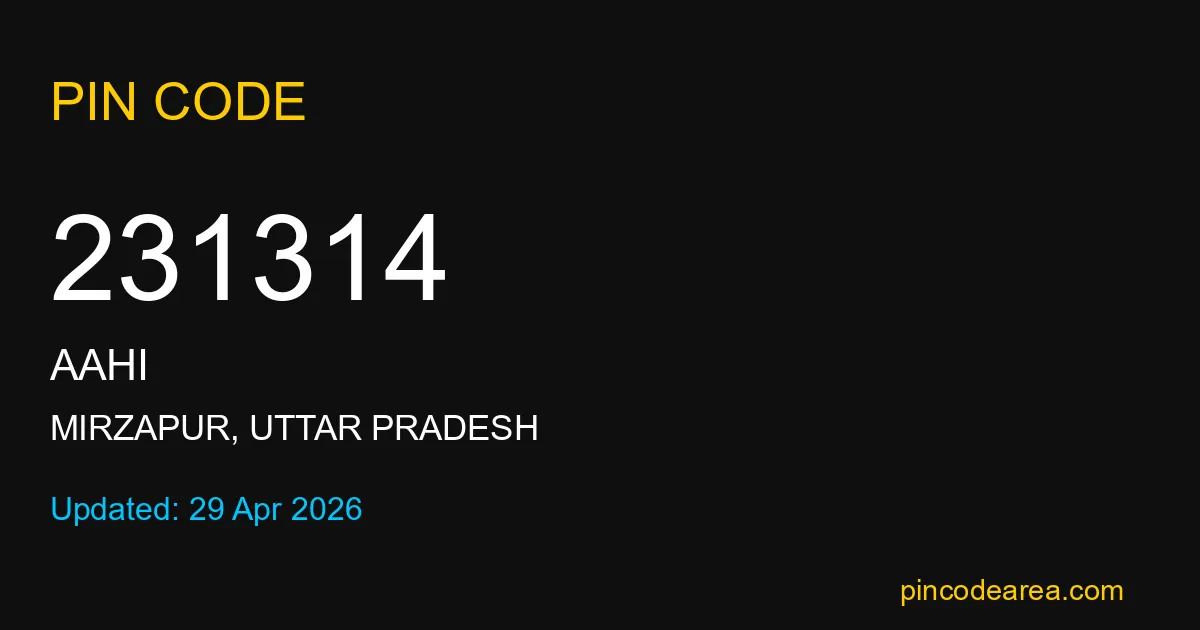 231314 PIN Code is assigned to Aahi Post Office located in Mirzapur district of Uttar Pradesh. It helps identify the exact delivery area for postal and courier services.