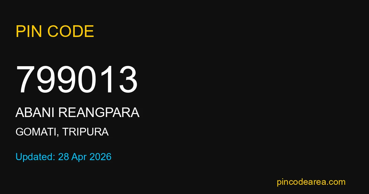 If you are searching for accurate location details, 799013 helps identify the exact postal region of Abani Reangpara in Tripura.