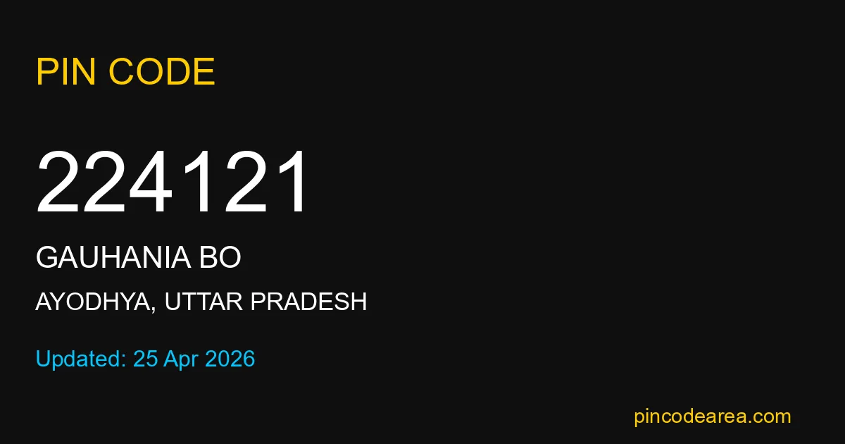224121 PIN Code belongs to Gauhania BO Post Office in Ayodhya district of Uttar Pradesh, India. This area mainly includes local residential and rural regions where India Post ensures timely mail and parcel delivery services.