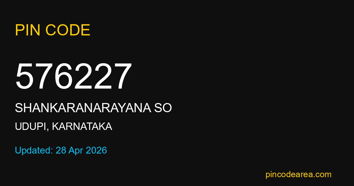 If you are searching for accurate location details, 576227 helps identify the exact postal region of Shankaranarayana SO in Karnataka.