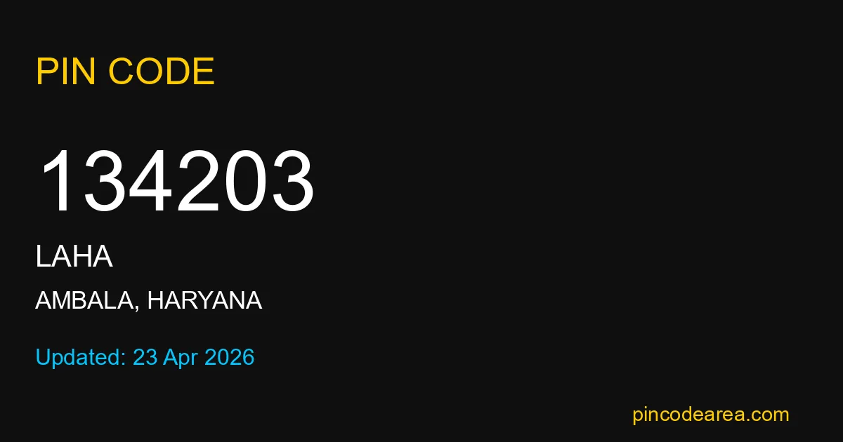 134203 PIN Code belongs to Laha Post Office in Ambala district of Haryana, India. This area mainly includes local residential and rural regions where India Post ensures timely mail and parcel delivery services.
