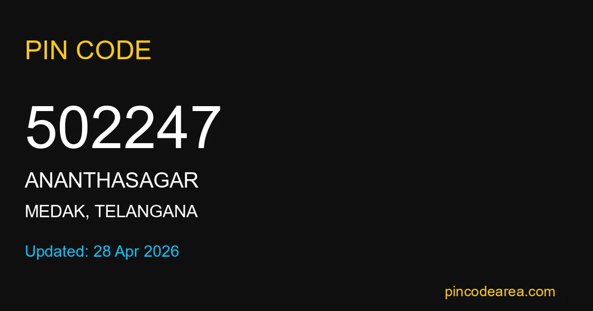 If you are searching for accurate location details, 502247 helps identify the exact postal region of Ananthasagar in Telangana.