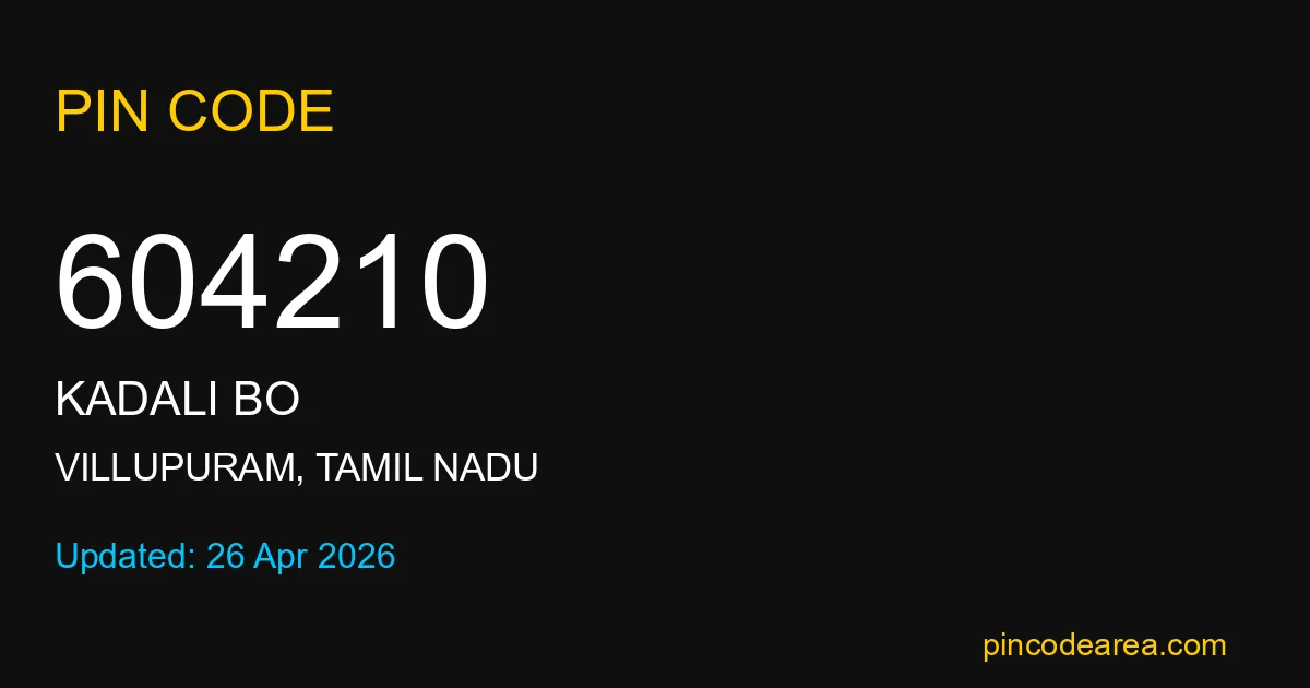 If you are searching for accurate location details, 604210 helps identify the exact postal region of Kadali BO in Tamil Nadu.