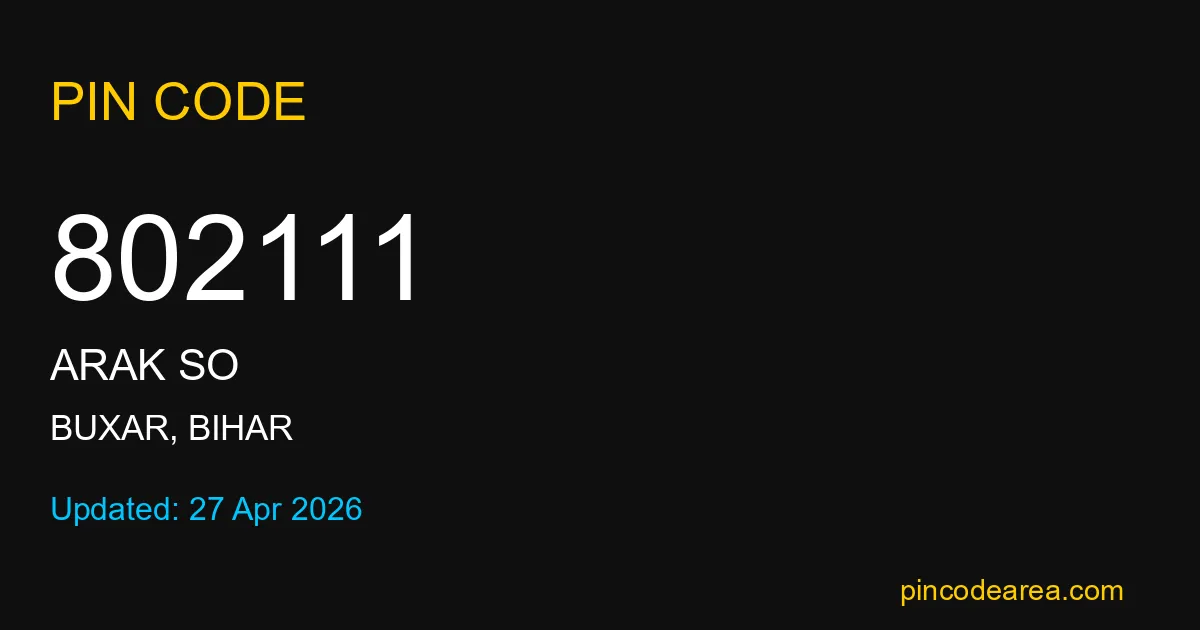 802111 PIN Code is assigned to Arak SO Post Office located in Buxar district of Bihar. It helps identify the exact delivery area for postal and courier services.