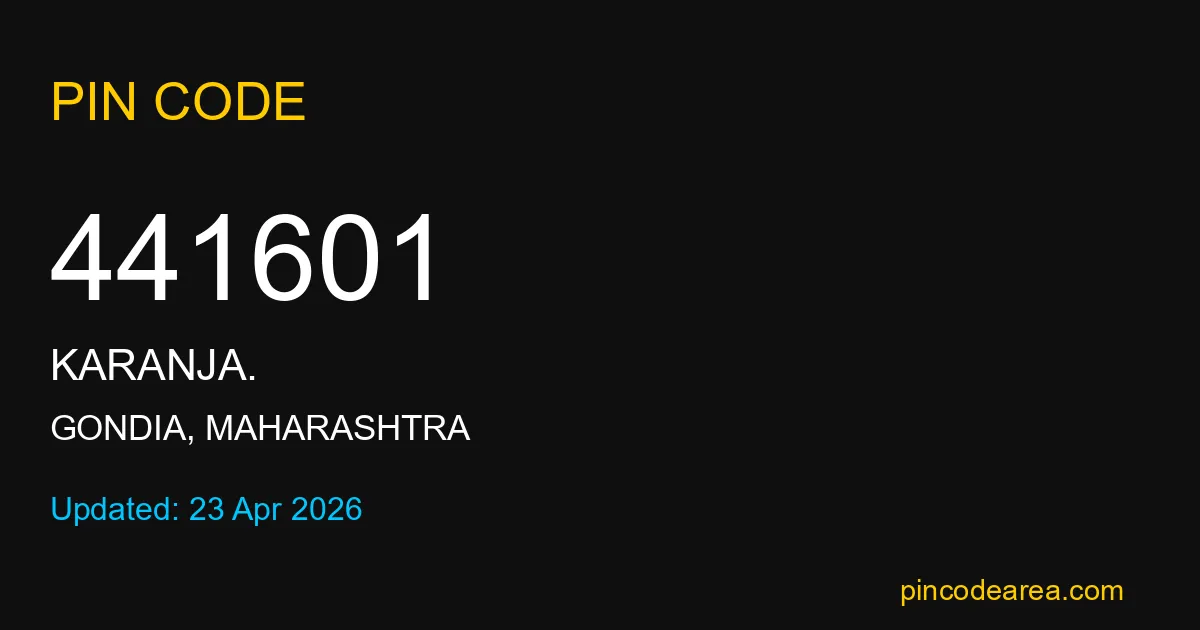 441601 PIN Code is assigned to Karanja. Post Office located in Gondia district of Maharashtra. It helps in identifying the exact delivery area.