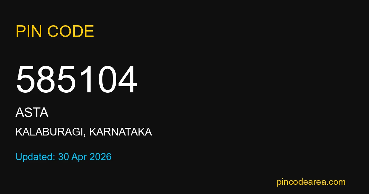 585104 PIN Code is assigned to Asta Post Office located in Kalaburagi district of Karnataka. It helps identify the exact delivery area for postal and courier services.