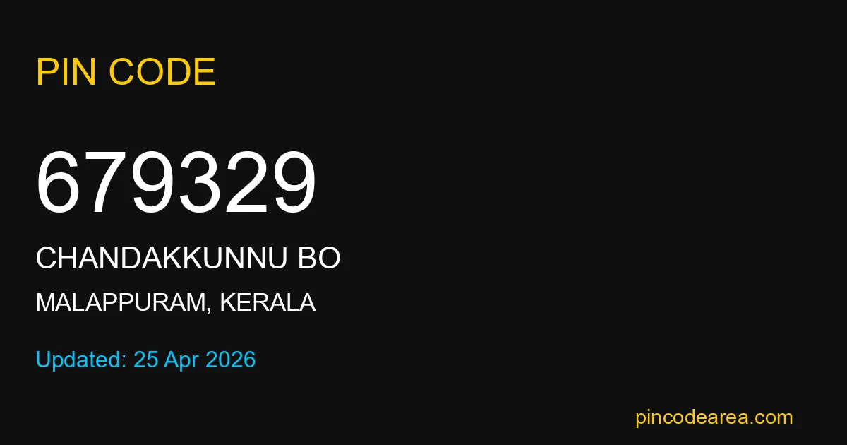 If you are searching for accurate location details, 679329 helps identify the exact postal region of Chandakkunnu BO in Kerala.