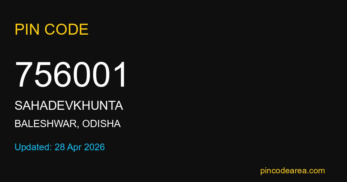 756001 PIN Code is assigned to Sahadevkhunta Post Office located in Baleshwar district of Odisha. It helps identify the exact delivery area for postal and courier services.