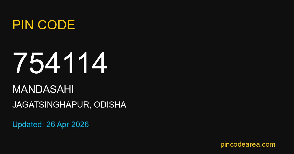If you are searching for accurate location details, 754114 helps identify the exact postal region of Mandasahi in Odisha.