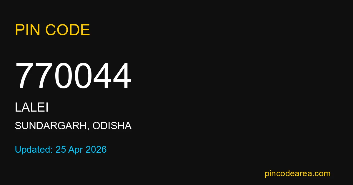 If you are searching for accurate location details, 770044 helps identify the exact postal region of Lalei in Odisha.
