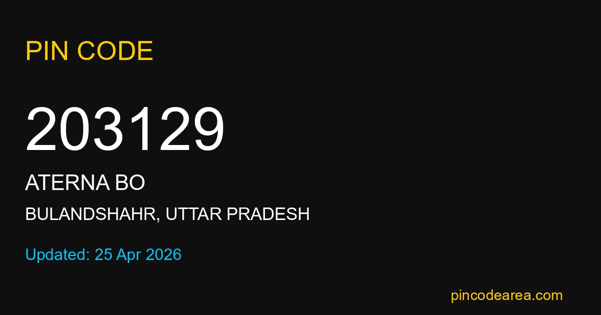 203129 PIN Code belongs to Aterna BO Post Office in Bulandshahr district of Uttar Pradesh, India. This area mainly includes local residential and rural regions where India Post ensures timely mail and parcel delivery services.