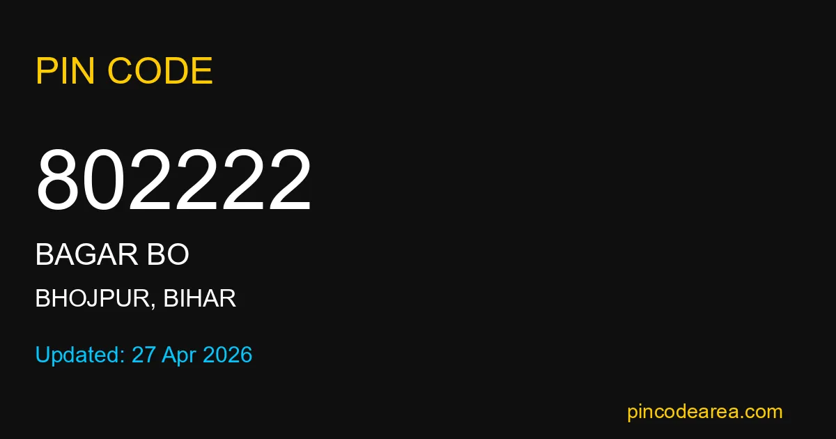 If you are searching for accurate location details, 802222 helps identify the exact postal region of Bagar BO in Bihar.