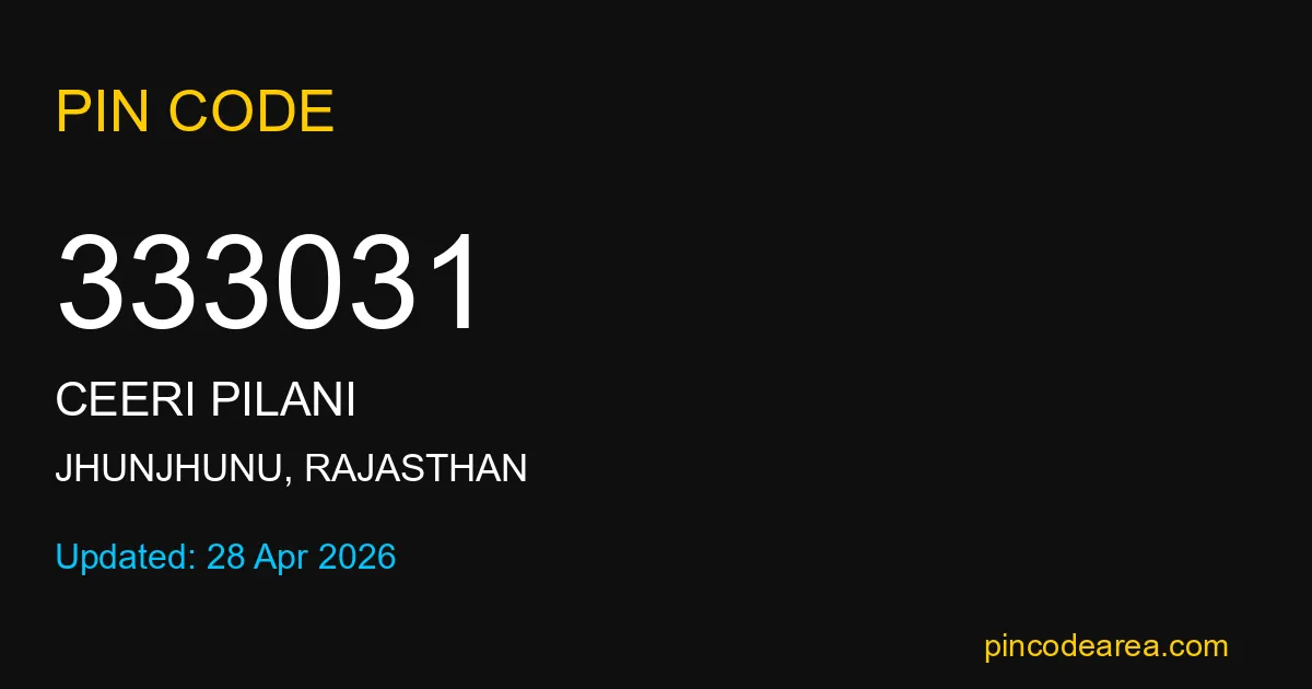333031 PIN Code is assigned to Ceeri Pilani Post Office located in Jhunjhunu district of Rajasthan. It helps identify the exact delivery area for postal and courier services.