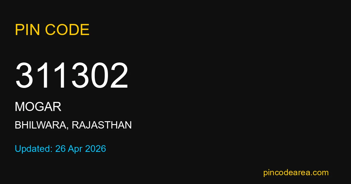 If you are searching for accurate location details, 311302 helps identify the exact postal region of Mogar in Rajasthan.