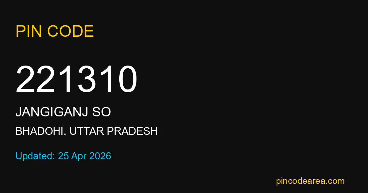 221310 PIN Code is assigned to Jangiganj SO Post Office located in Bhadohi district of Uttar Pradesh. It helps in identifying the exact delivery area.