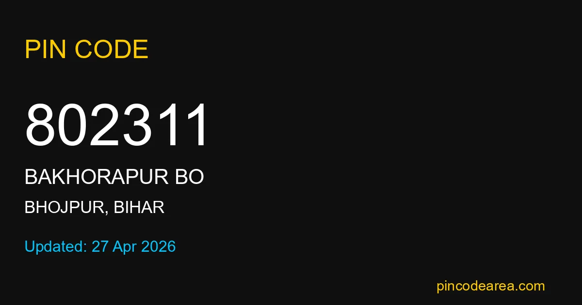 802311 PIN Code is assigned to Bakhorapur BO Post Office located in Bhojpur district of Bihar. It helps identify the exact delivery area for postal and courier services.