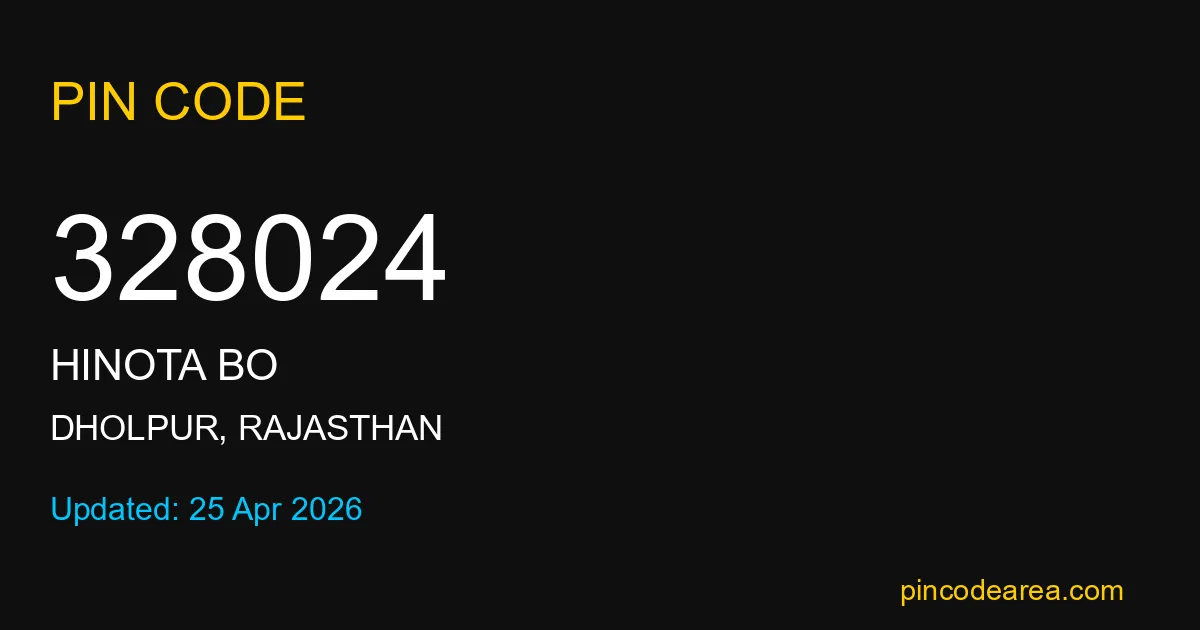 328024 PIN Code belongs to Hinota BO Post Office in Dholpur district of Rajasthan, India. This area mainly includes local residential and rural regions where India Post ensures timely mail and parcel delivery services.