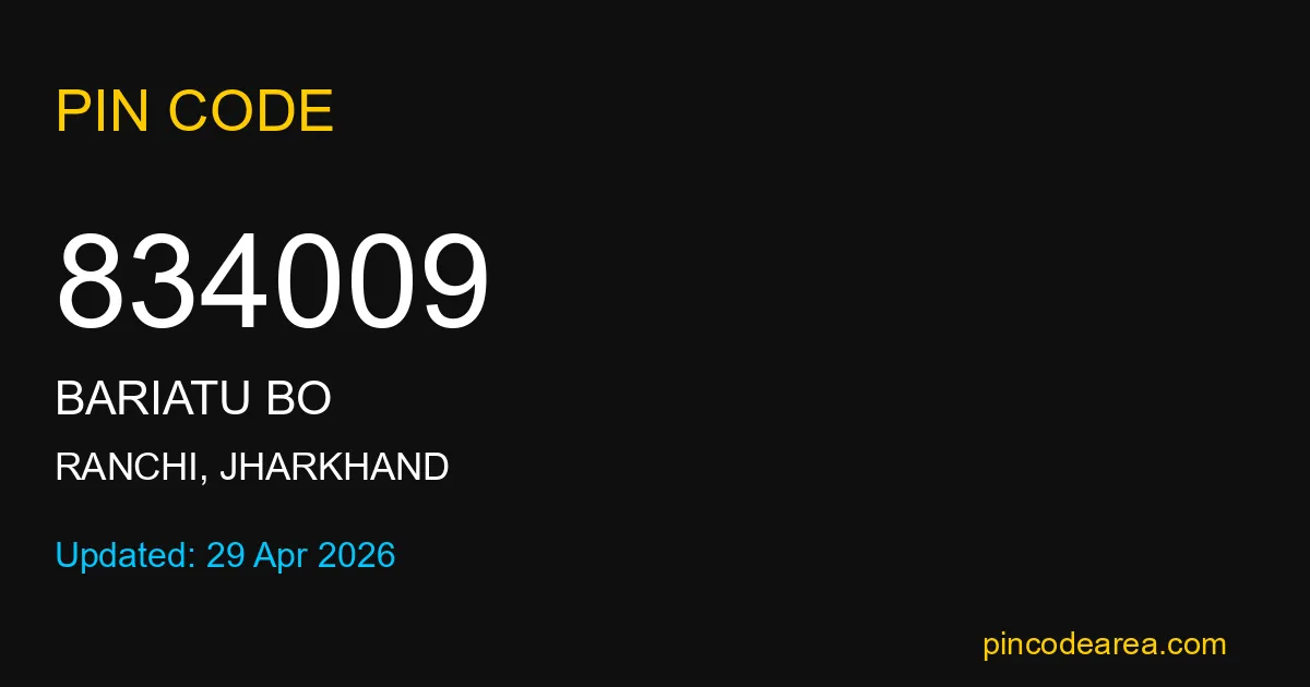 If you are searching for accurate location details, 834009 helps identify the exact postal region of Bariatu BO in Jharkhand.