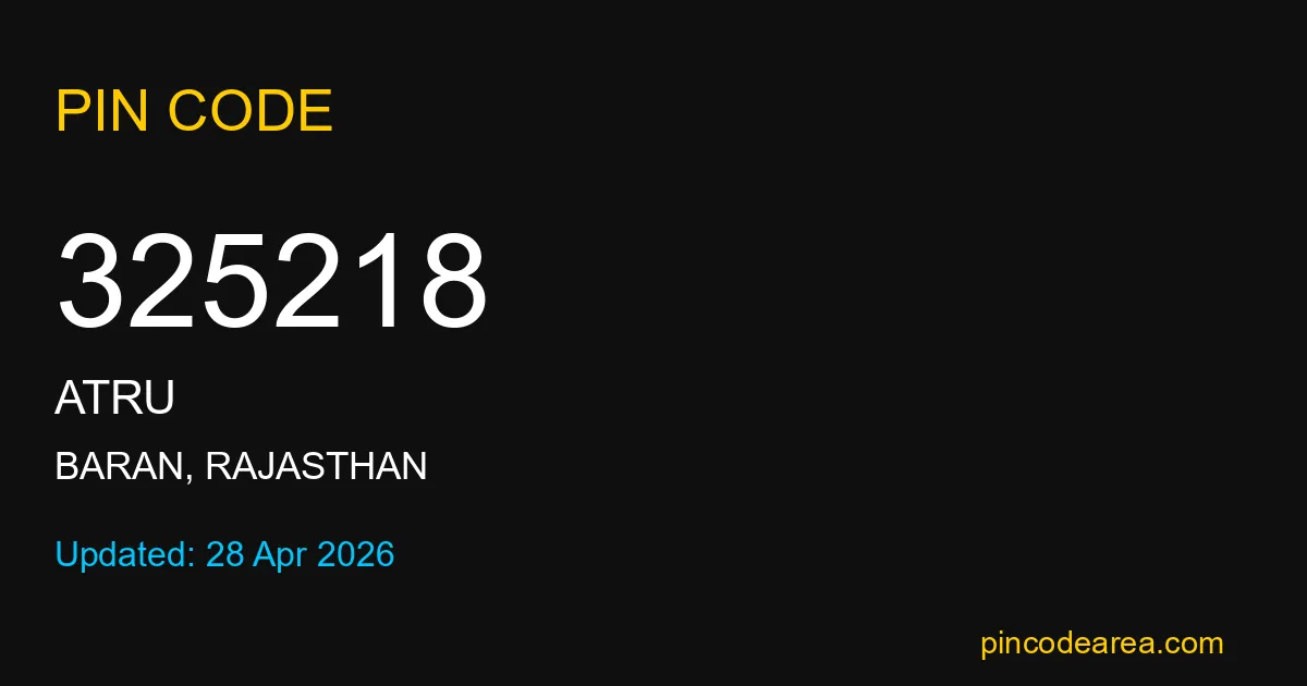 If you are searching for accurate location details, 325218 helps identify the exact postal region of ATRU in Rajasthan.
