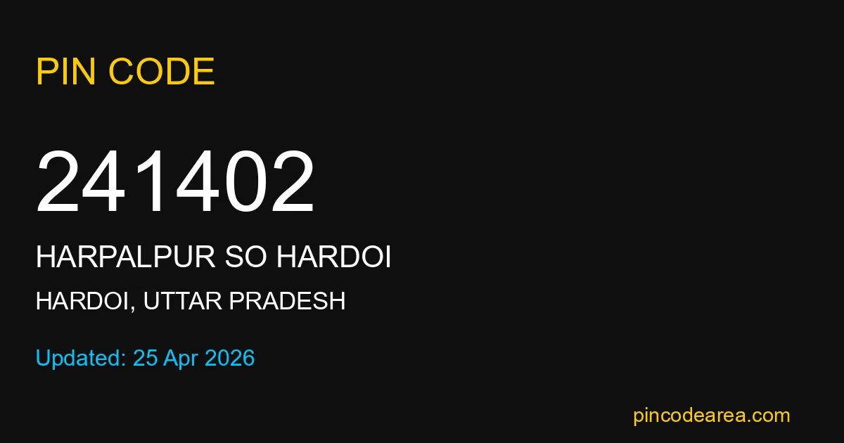 Many users search for 241402 PIN Code to confirm address details, track courier services, and ensure correct delivery location in Hardoi district.