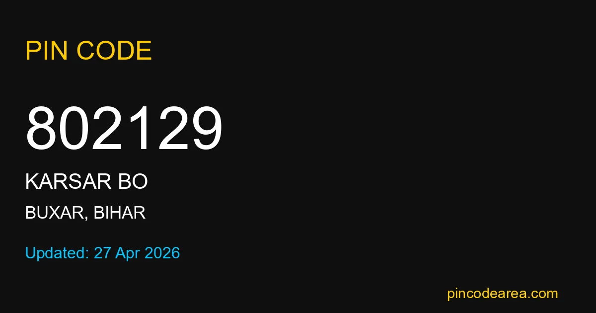 If you are searching for accurate location details, 802129 helps identify the exact postal region of Karsar BO in Bihar.