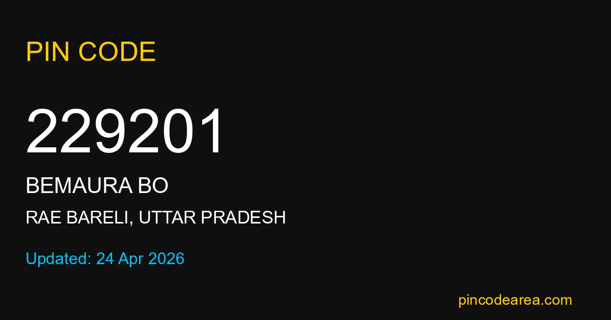 229201 PIN Code is assigned to Bemaura BO Post Office located in Rae Bareli district of Uttar Pradesh. It helps in identifying the exact delivery area.