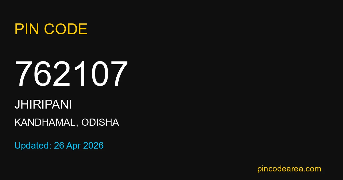 762107 PIN Code is assigned to Jhiripani Post Office located in Kandhamal district of Odisha. It helps identify the exact delivery area for postal and courier services.