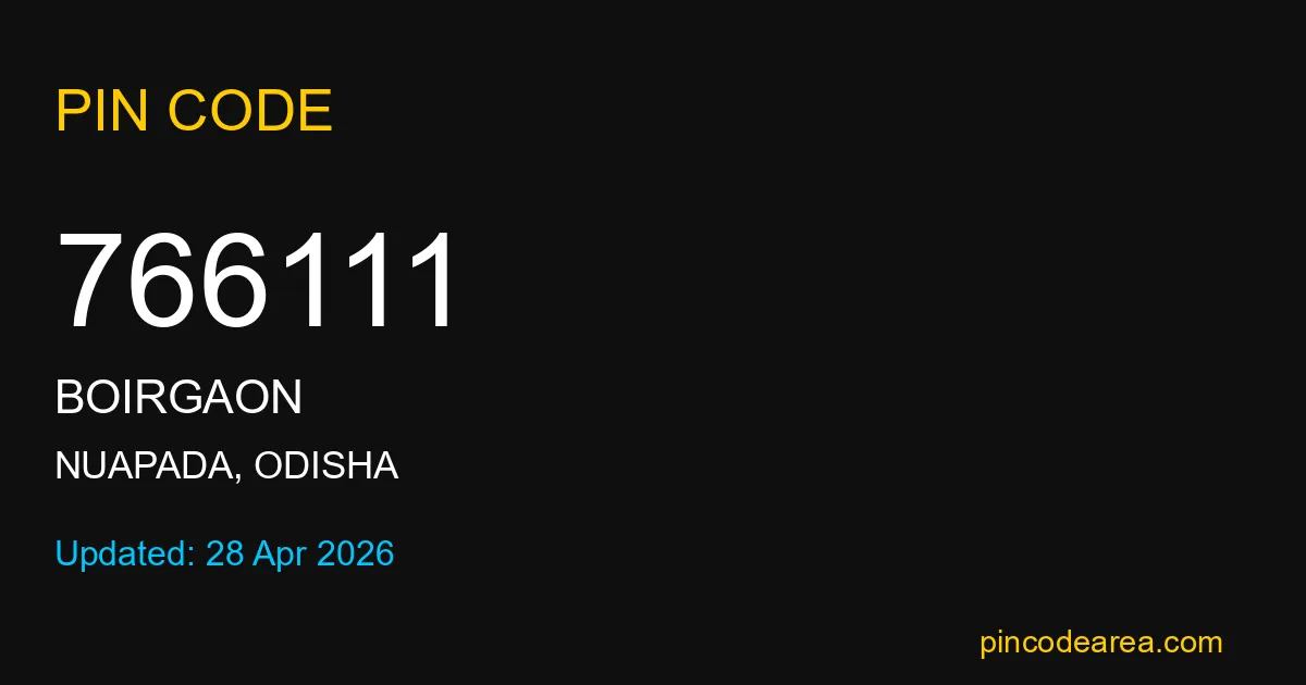 766111 PIN Code is assigned to Boirgaon Post Office located in Nuapada district of Odisha. It helps identify the exact delivery area for postal and courier services.