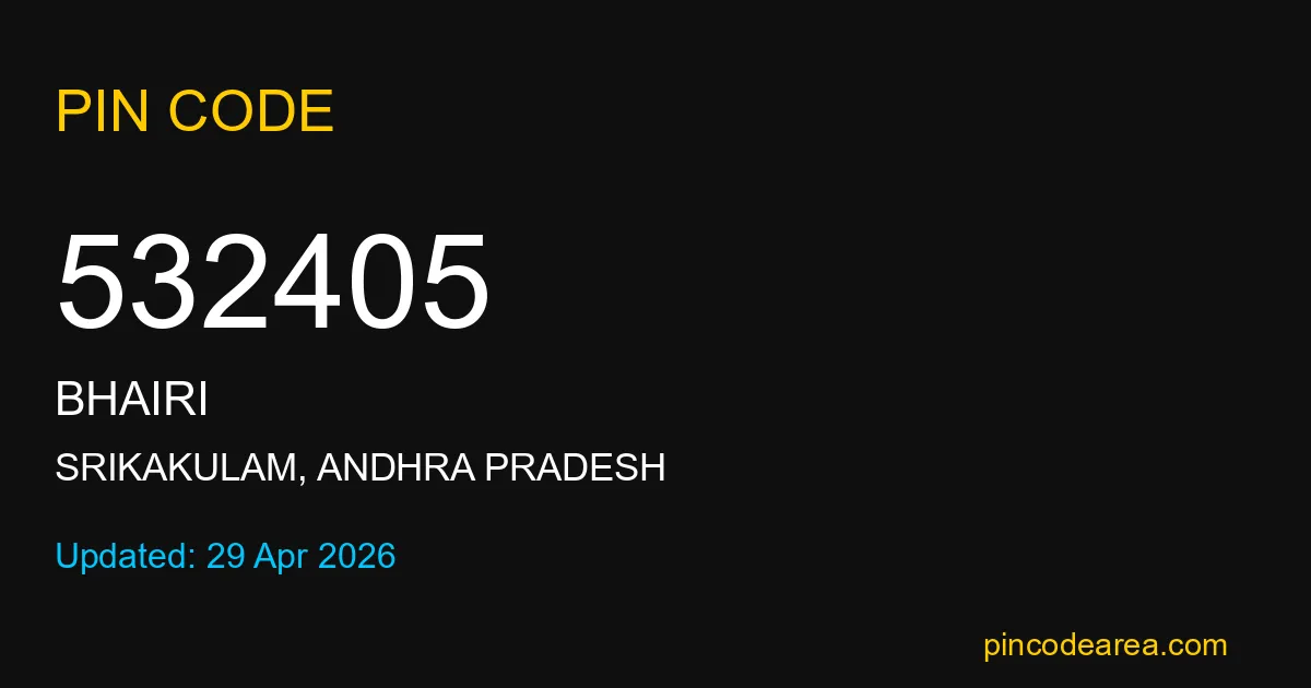 532405 PIN Code is assigned to Bhairi Post Office located in Srikakulam district of Andhra Pradesh. It helps identify the exact delivery area for postal and courier services.