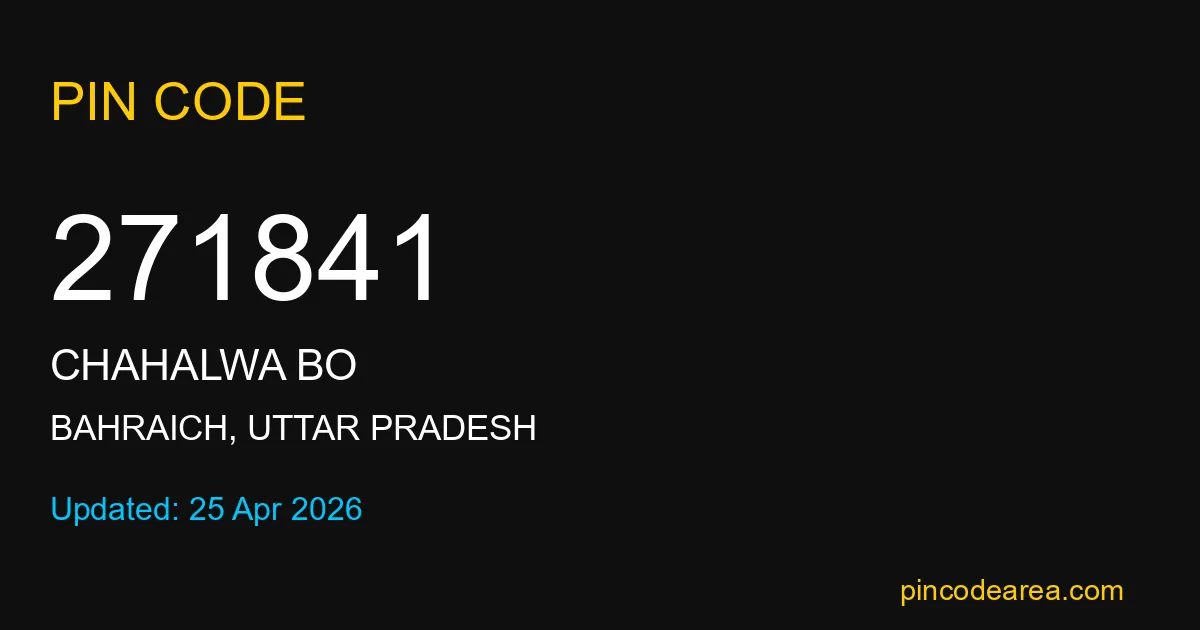 271841 PIN Code is assigned to Chahalwa BO Post Office located in Bahraich district of Uttar Pradesh. It helps in identifying the exact delivery area.