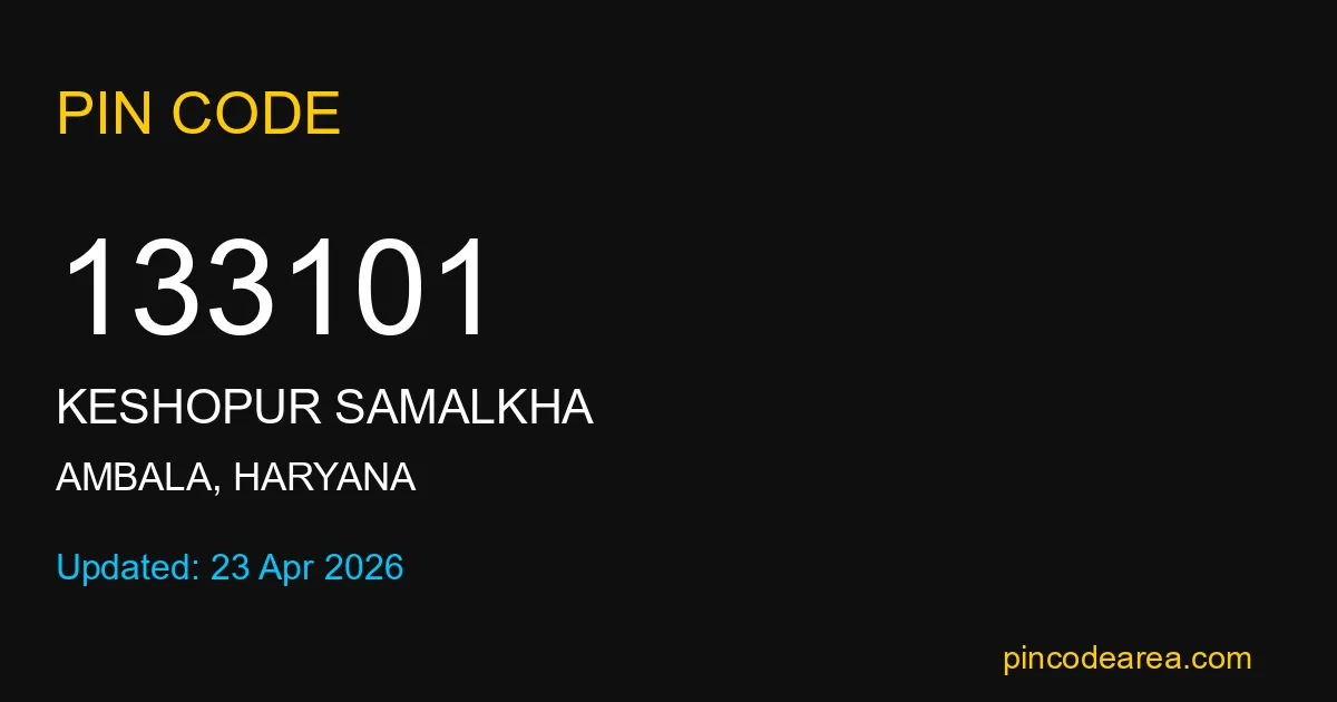 133101 PIN Code is assigned to Keshopur Samalkha Post Office located in Ambala district of Haryana. It helps in identifying the exact delivery area.