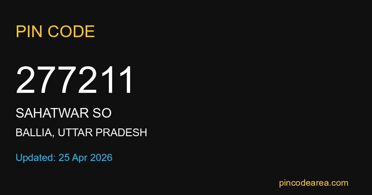 277211 PIN Code is assigned to Sahatwar SO Post Office located in Ballia district of Uttar Pradesh. It helps in identifying the exact delivery area.