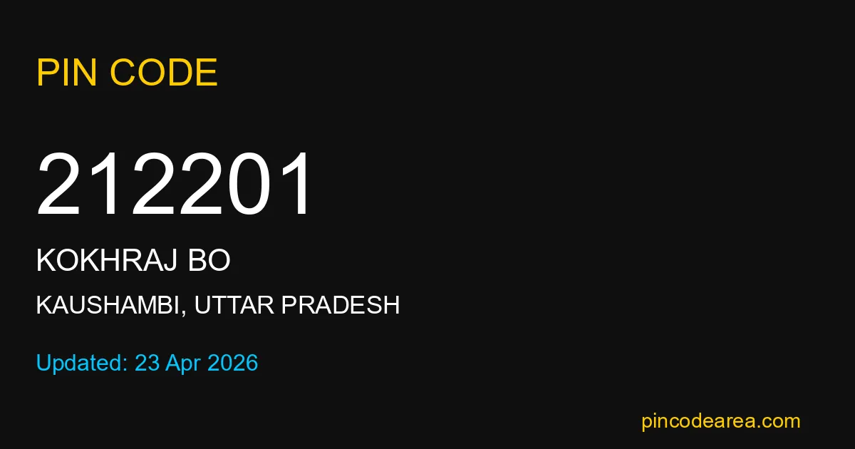 212201 PIN Code is assigned to Kokhraj BO Post Office located in Kaushambi district of Uttar Pradesh. It helps in identifying the exact delivery area.