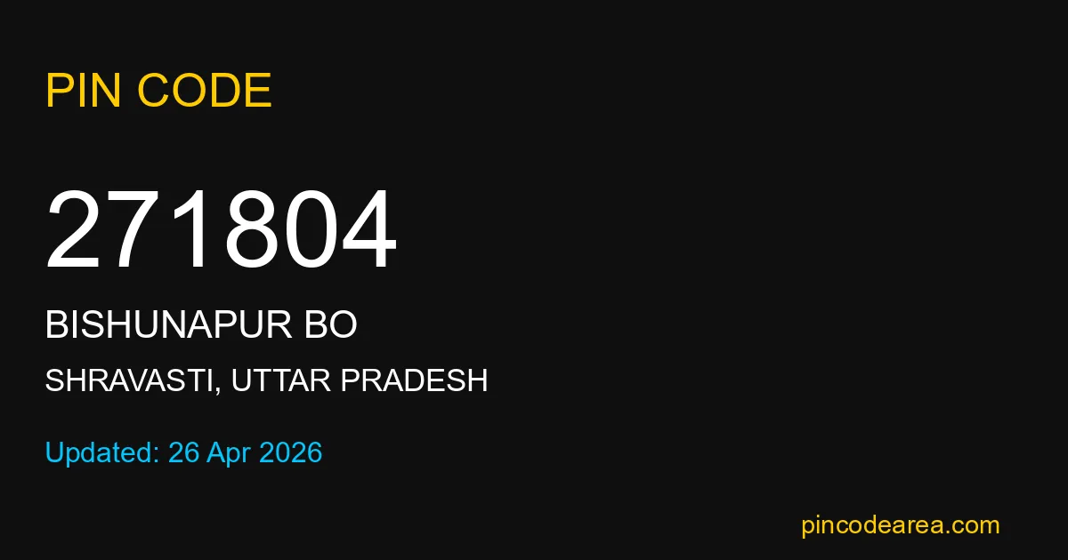 271804 PIN Code belongs to Bishunapur BO Post Office in Shravasti district of Uttar Pradesh, India. This area mainly includes local residential and rural regions where India Post ensures timely mail and parcel delivery services.