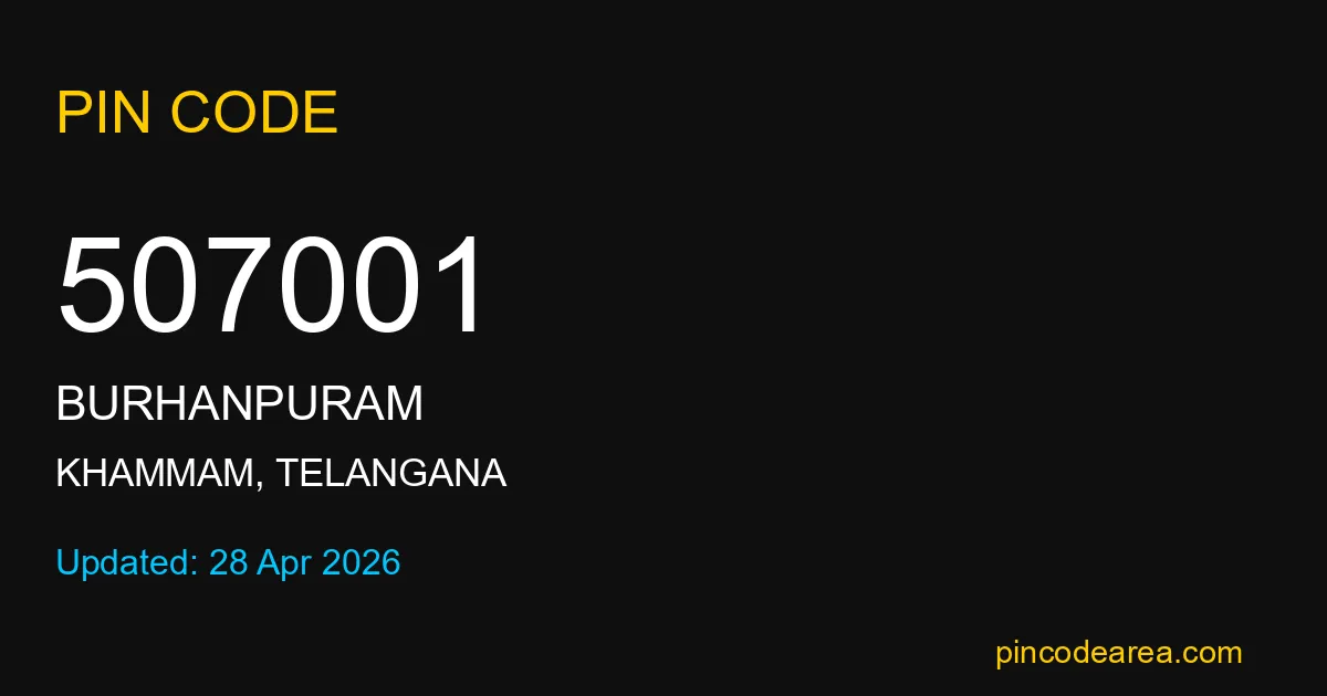 507001 PIN Code is assigned to Burhanpuram Post Office located in Khammam district of Telangana. It helps identify the exact delivery area for postal and courier services.
