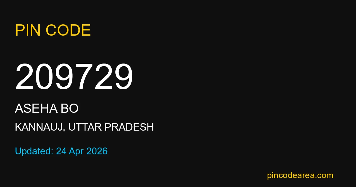 If you are searching for accurate location details, 209729 helps identify the exact postal region of Aseha BO in Uttar Pradesh.