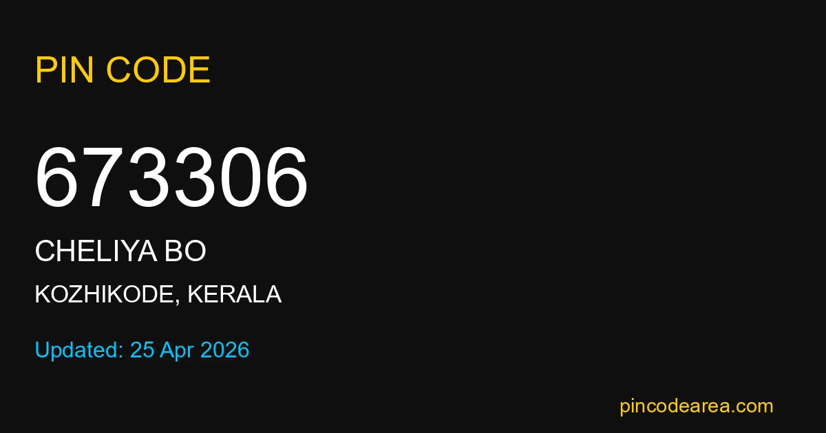 If you are searching for accurate location details, 673306 helps identify the exact postal region of Cheliya BO in Kerala.