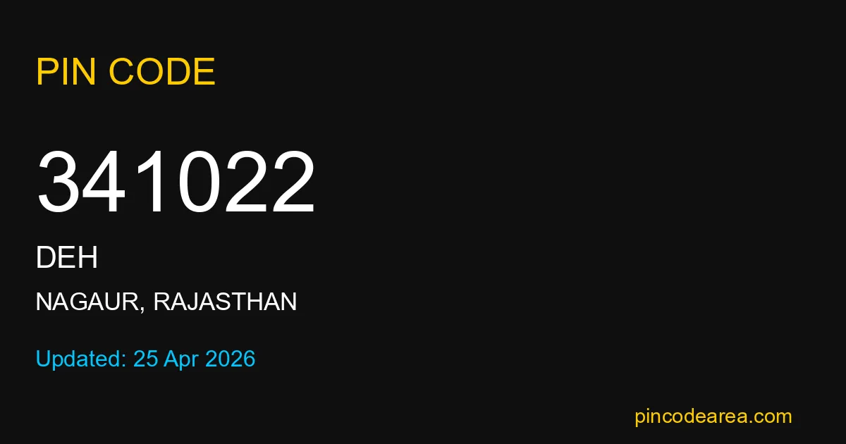 If you are searching for accurate location details, 341022 helps identify the exact postal region of Deh in Rajasthan.