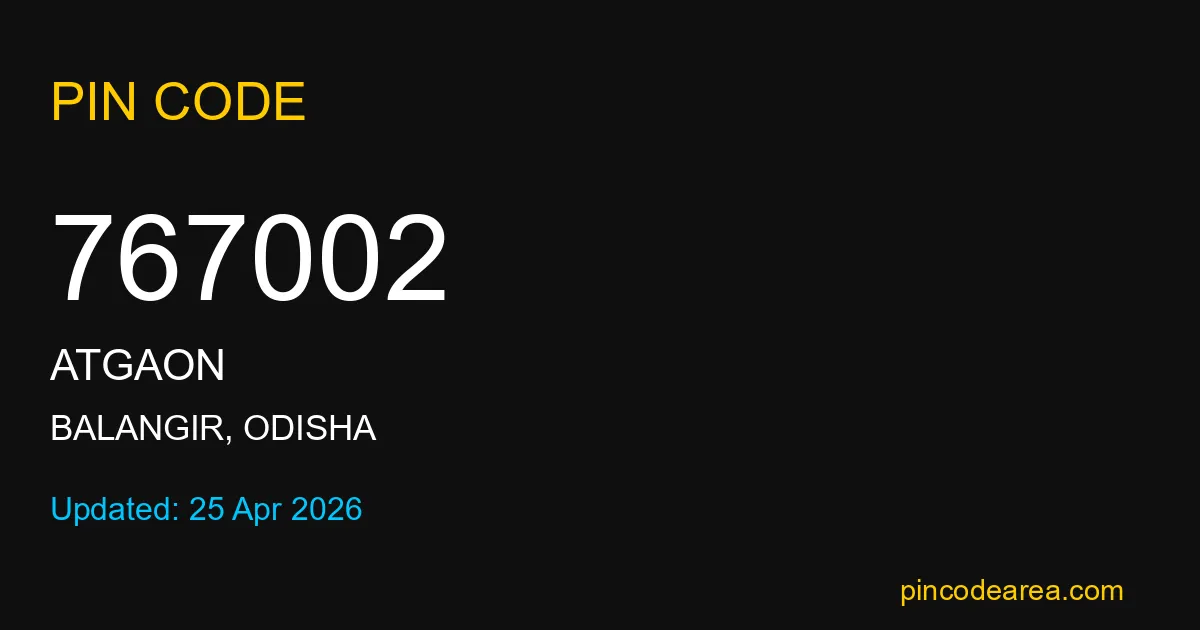 If you are searching for accurate location details, 767002 helps identify the exact postal region of Atgaon in Odisha.