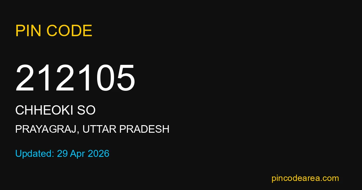 212105 PIN Code belongs to Chheoki SO Post Office in Prayagraj district of Uttar Pradesh, India. This area mainly includes local residential and rural regions where India Post ensures timely mail and parcel delivery services.