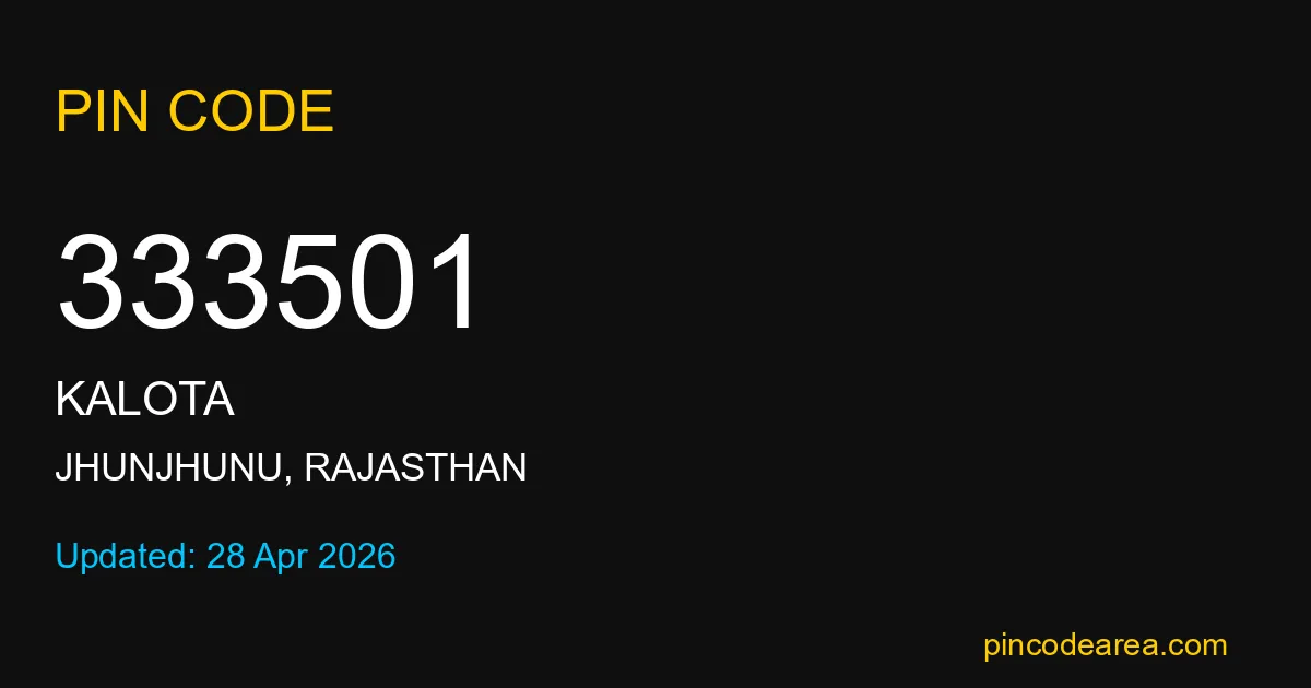 333501 PIN Code is assigned to Kalota Post Office located in Jhunjhunu district of Rajasthan. It helps identify the exact delivery area for postal and courier services.