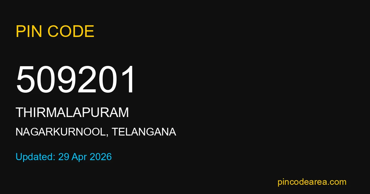 509201 PIN Code is assigned to Thirmalapuram Post Office located in Nagarkurnool district of Telangana. It helps identify the exact delivery area for postal and courier services.
