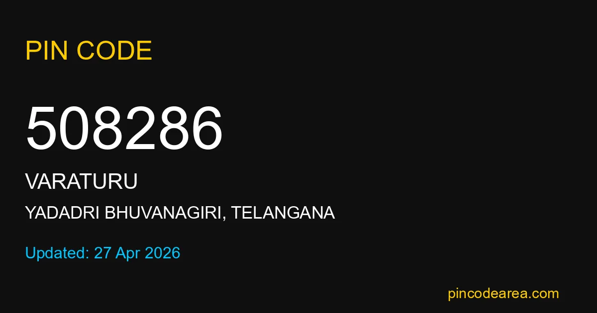 508286 PIN Code is assigned to Varaturu Post Office located in Yadadri Bhuvanagiri district of Telangana. It helps identify the exact delivery area for postal and courier services.