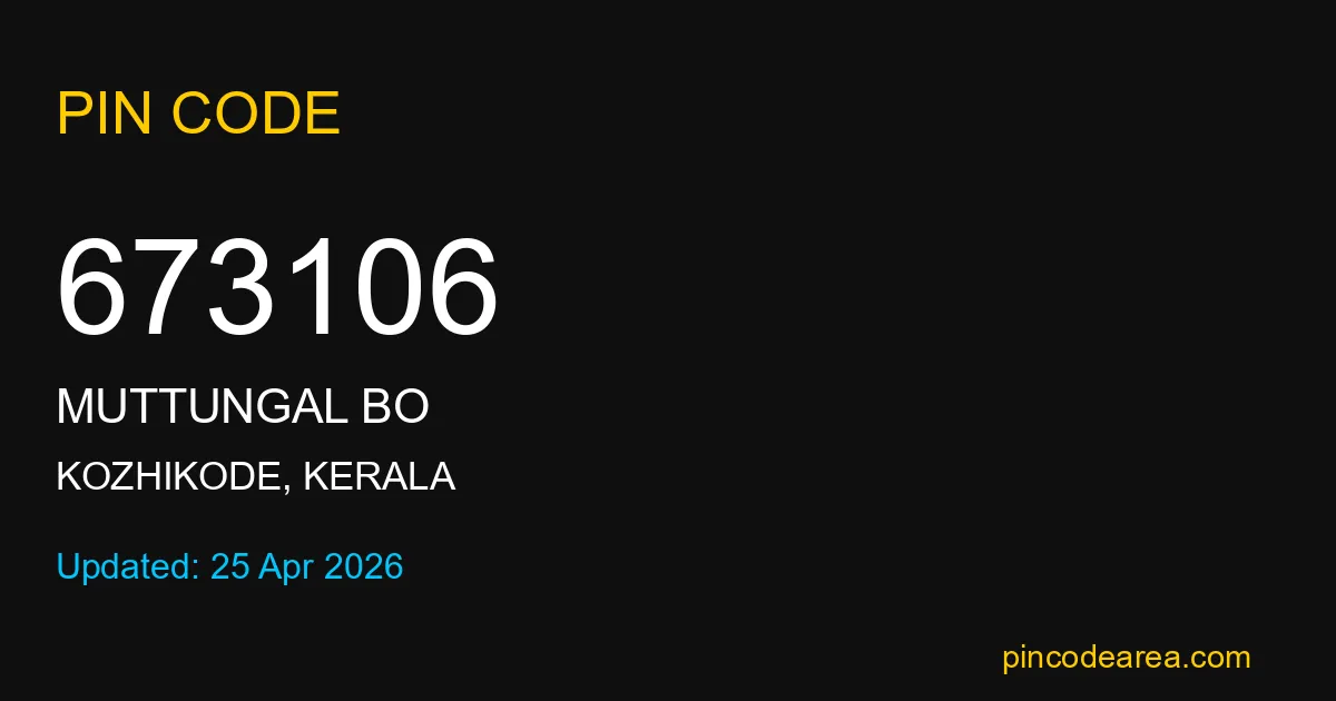 673106 PIN Code belongs to Muttungal BO Post Office in Kozhikode district of Kerala, India. This area mainly includes local residential and rural regions where India Post ensures timely mail and parcel delivery services.