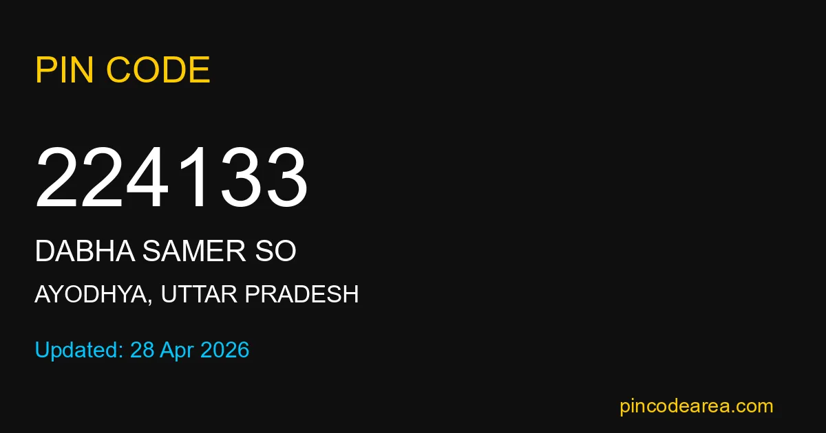 224133 PIN Code is assigned to Dabha Samer SO Post Office located in Ayodhya district of Uttar Pradesh. It helps identify the exact delivery area for postal and courier services.