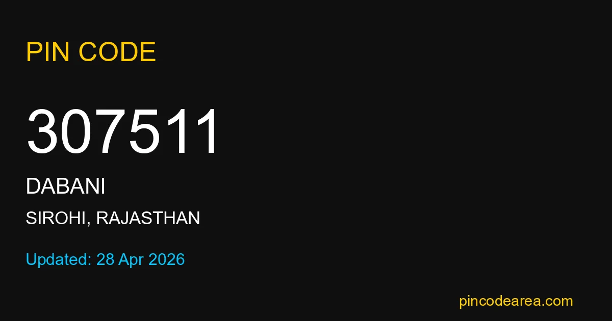 307511 PIN Code belongs to Dabani Post Office in Sirohi district of Rajasthan, India. This area mainly includes local residential and rural regions where India Post ensures timely mail and parcel delivery services.