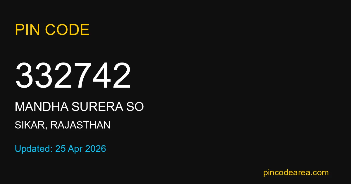 If you are searching for accurate location details, 332742 helps identify the exact postal region of Mandha Surera SO in Rajasthan.