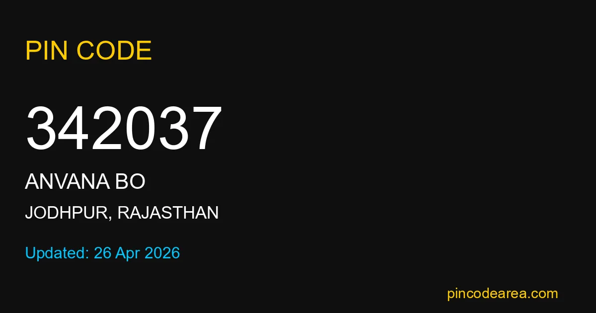 If you are searching for accurate location details, 342037 helps identify the exact postal region of Anvana BO in Rajasthan.