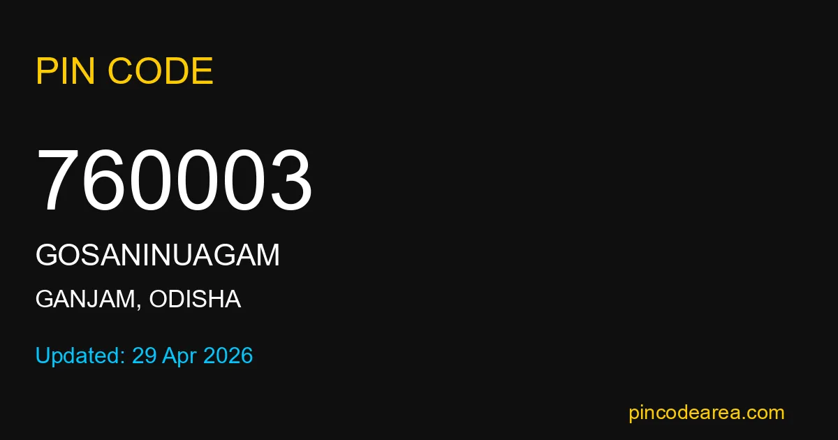 760003 PIN Code is assigned to Gosaninuagam Post Office located in Ganjam district of Odisha. It helps identify the exact delivery area for postal and courier services.